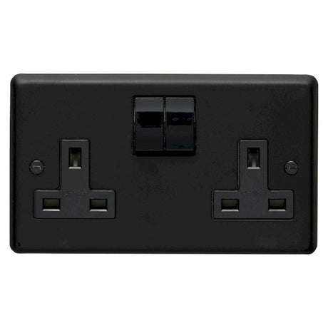 Eurolite Stainless Steel Matt Black 2 Gang 13amp DP Switched Socket with Black Insert