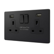 Double Switched Socket with USB-AA – 15W Fast Charge SH|P® – Matt Black Metal Faceplate (13A, 2 Gang)