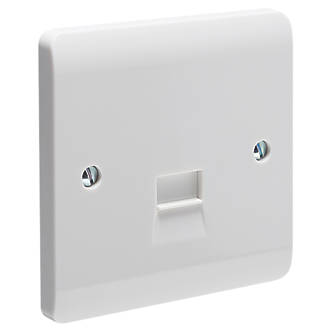 Master telephone socket with a stylish slim faceplate with curved top and bottom edges. Monobloc design gives a sleek appearance and retains the plate integrity.