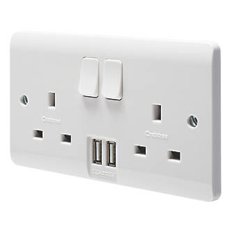 CRABTREE INSTINCT 13A 2-GANG DP SWITCHED SOCKET + 2.1A 2-OUTLET TYPE A USB CHARGER WHITE